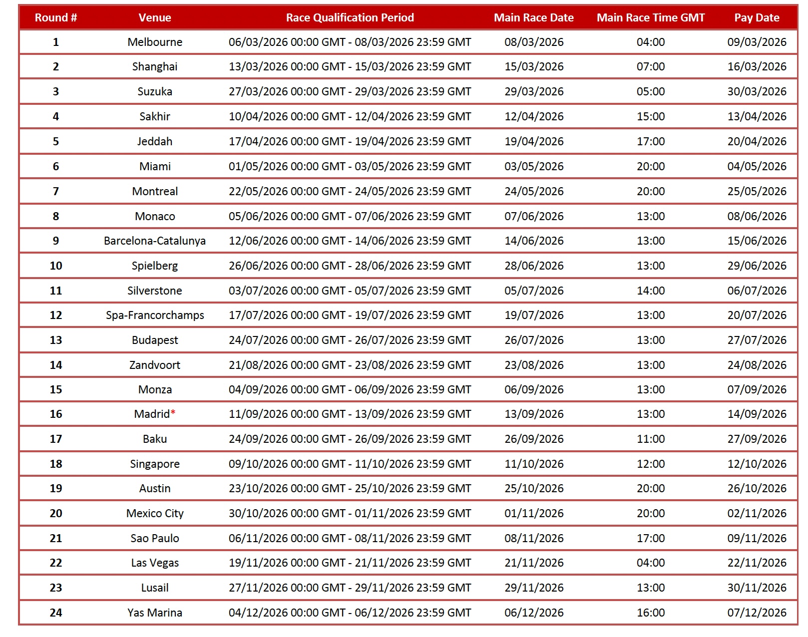 Квалификационные Миссии: 06/03/2026 – 06/12/2026 (с перерывами)